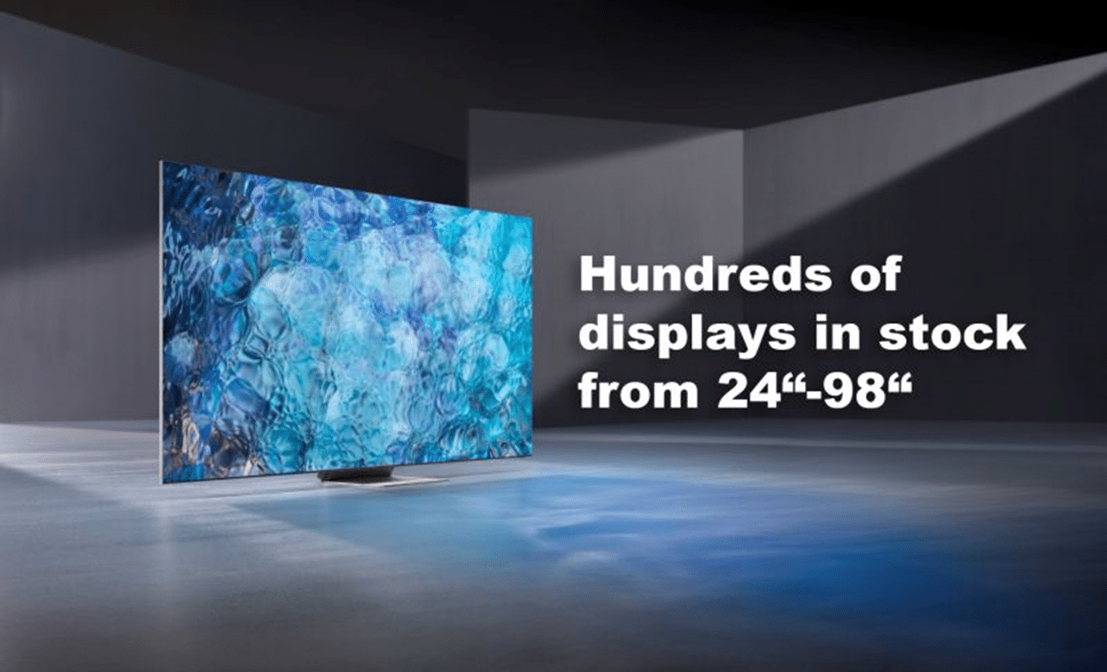 Whether you need to rent a computer monitor or hundreds of 4K TV rentals for a trade show, we can help you find a Display Solution that fits your specific need. Best of all, we have large monitors ranging in screen sizes from 27″ to 100 inches.